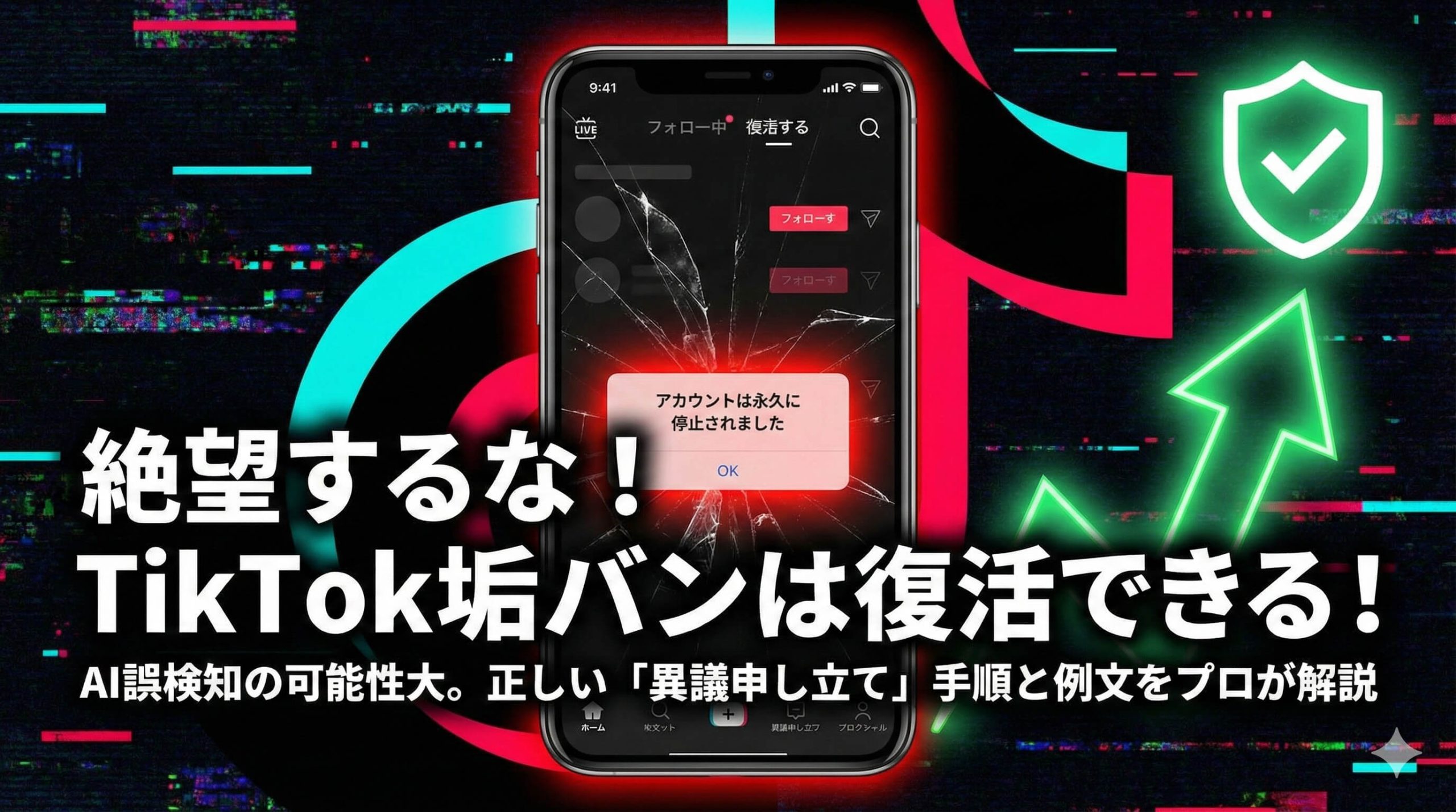 この記事では、プロのWebマーケターが「TikTokで垢バンされる主な理由」と、「アカウントを復活させるための具体的な手順・申請文の例文」を解説します。焦らず、まずはこの記事の手順通りに行動を起こしてください。